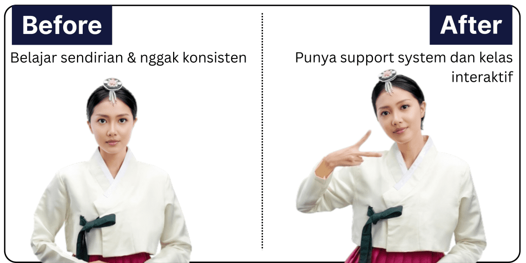 Awalnya aku coba-coba ikut kelas Beginner Level, ternyata kelasnya mudah diikuti. Akhirnya, aku tertarik dan mendaftar untuk paketan kelas lainnya, Semua kelas yang aku ikuti sangat bermanfaat meski terkadang ada materi yang agak sulit dipahami, tapi 쌤nya sabar banget jelasinnya dan ga ngebosenin. Intinya, recommended banget deh buat yang tertarik belajar Bahasa dan Kebudayaan Korea.