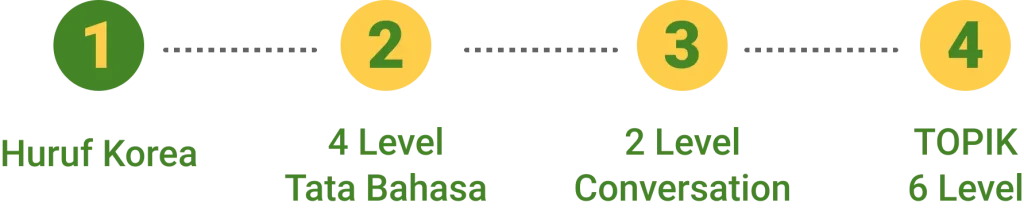 Program belajar bahasa Korea terjadwal selama 5 bulan dari nol hingga menengah dengan kelas live interaktif. Cocok untuk pemula yang ingin belajar terarah dengan kurikulum jelas, didampingi tutor, ujian berkala, serta akses materi dan modul selamanya untuk bisa mengulang kapan pun